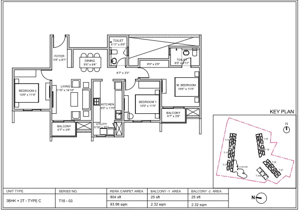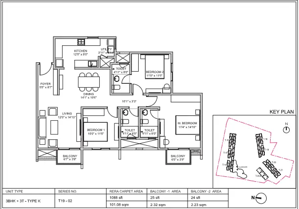 | 3 BHK + 3T + PWD | 1107 Sq.ft. | ₹ 1.45 Cr* | Complete Costing Details |